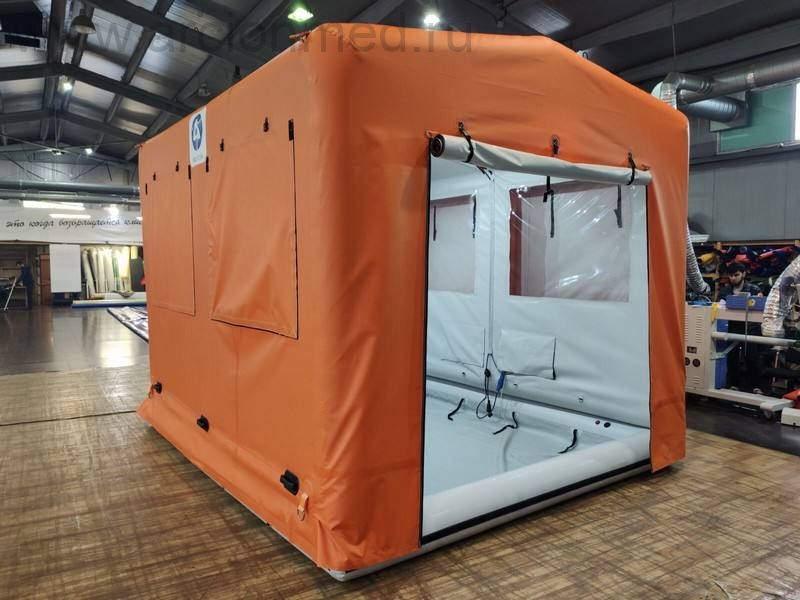 Компактные надувные палатки (кабины) из ПВХ ткани разрабатываются и производятся на предприятиях группы компаний AZART для медицинских учреждений, подразделений МЧС, оперативных служб Роспотребнадзора и мобильных подразделений химической/биологической защиты, специализированных лабораторий. Изделие представляет собой конструкцию на базе пневмокаркаса. Рассчитана на кратковременное размещение людей в одежде, а также средств индивидуальной защиты (СИЗ). Обработка проводится дезинфицирующими и дезактивирующими средствами без риска замерзания и непроизводительных потерь раствора.
