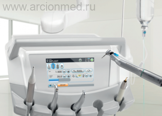 • Полный турбинный набор с наконечником Silent Power Evo Miniature с фиброоптикой, быстросъемный (опция) • Микромотор Implantor LED с фиброоптикой (100 – 40000 об/мин, 5,3 Нсм)